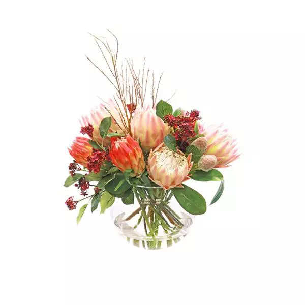 This beautiful, bespoke, and natural looking artificial flower arrangement is made to order by our team of passionate and skilled florists. Each arrangement we make, while based on a set design, is a unique piece of floral art that is sure to turn the heads of those whose path it may cross.