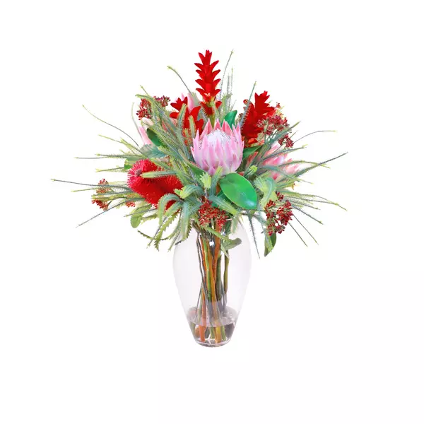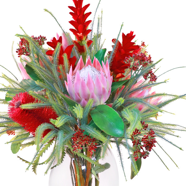 This beautiful, bespoke, and natural looking artificial Protea floral arrangement is made to order by our team of passionate and skilled florists. Each arrangement we make, while based on a set design, is a unique piece of floral art that is sure to turn the heads of those whose path it may cross.