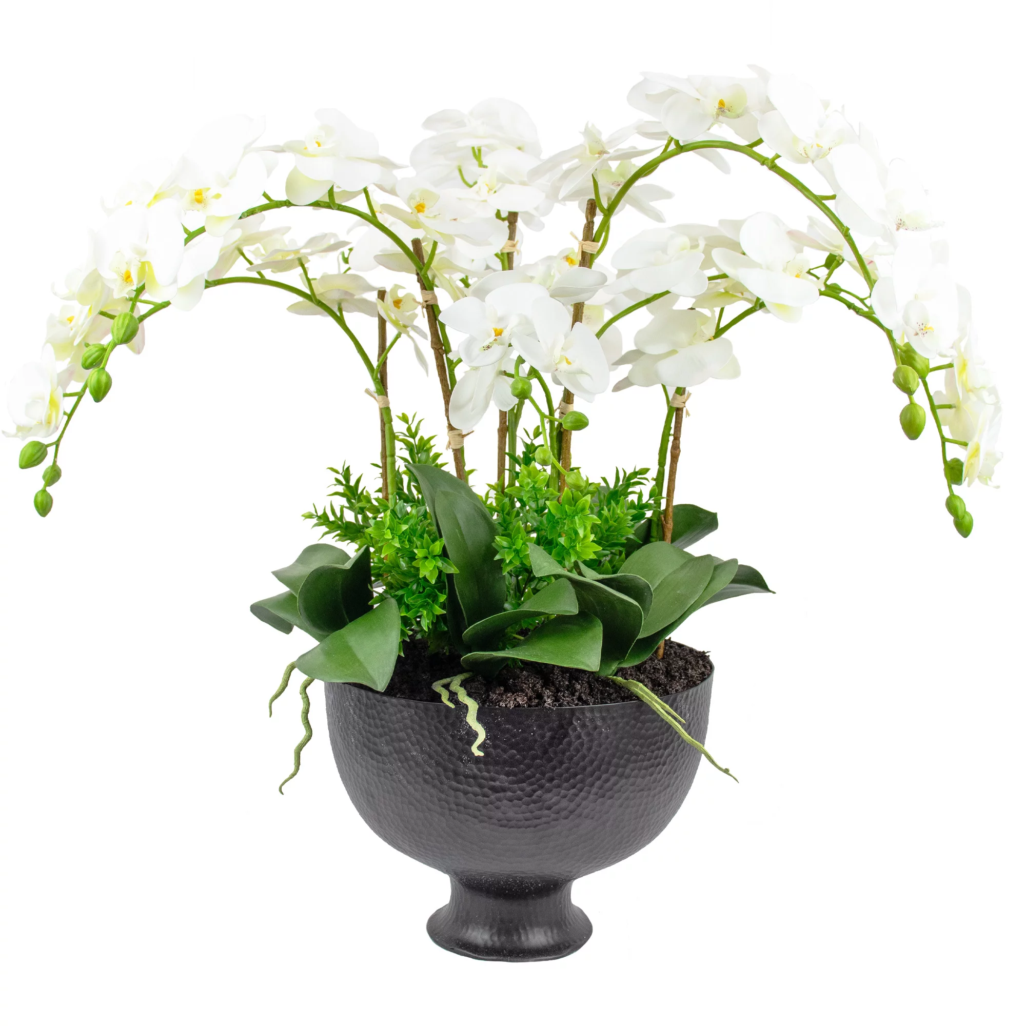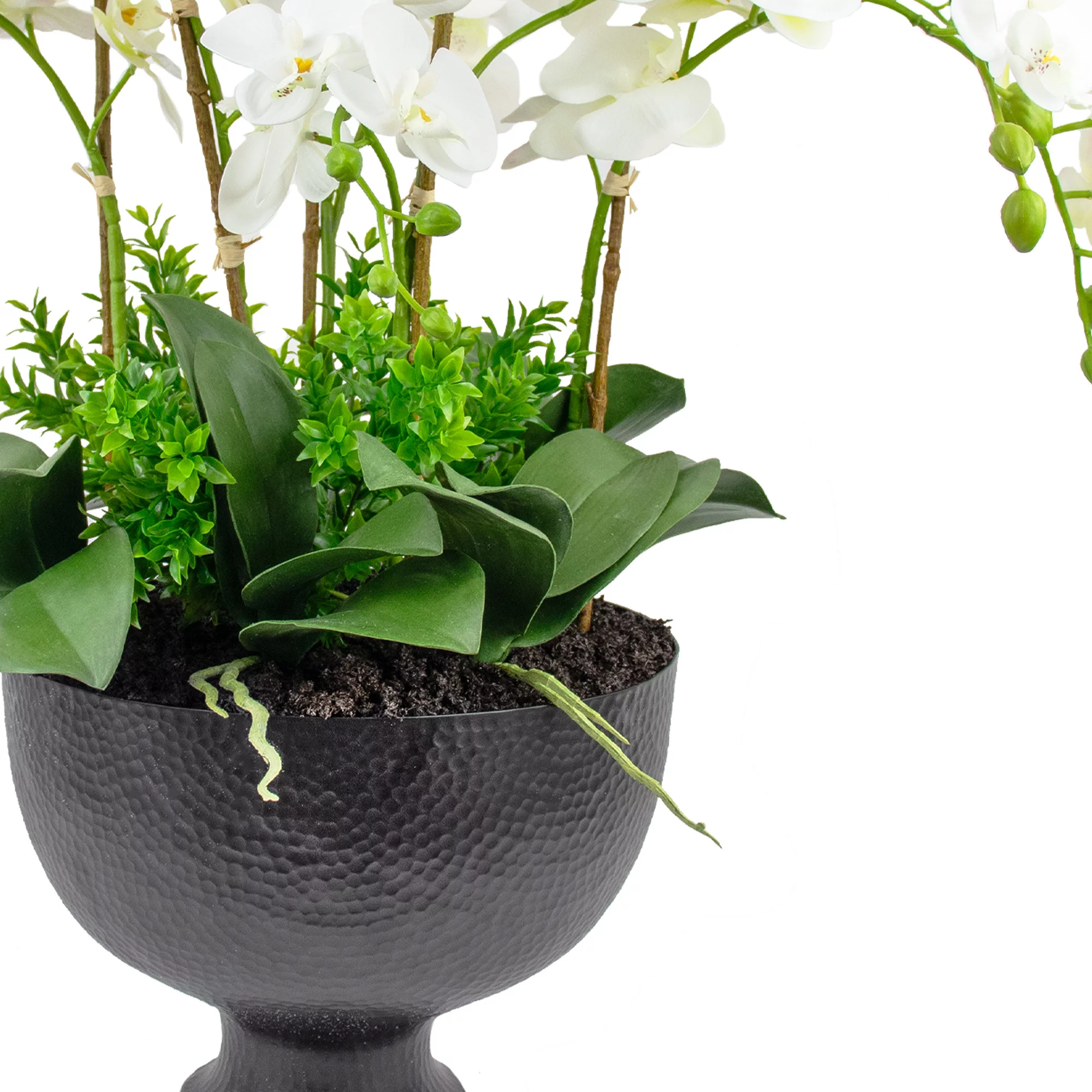 White Phalaenopsis Orchids in Hammered Metal Planter