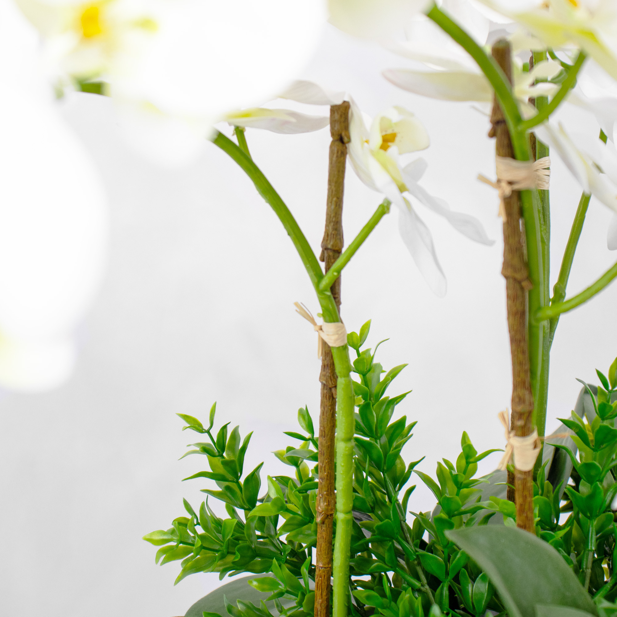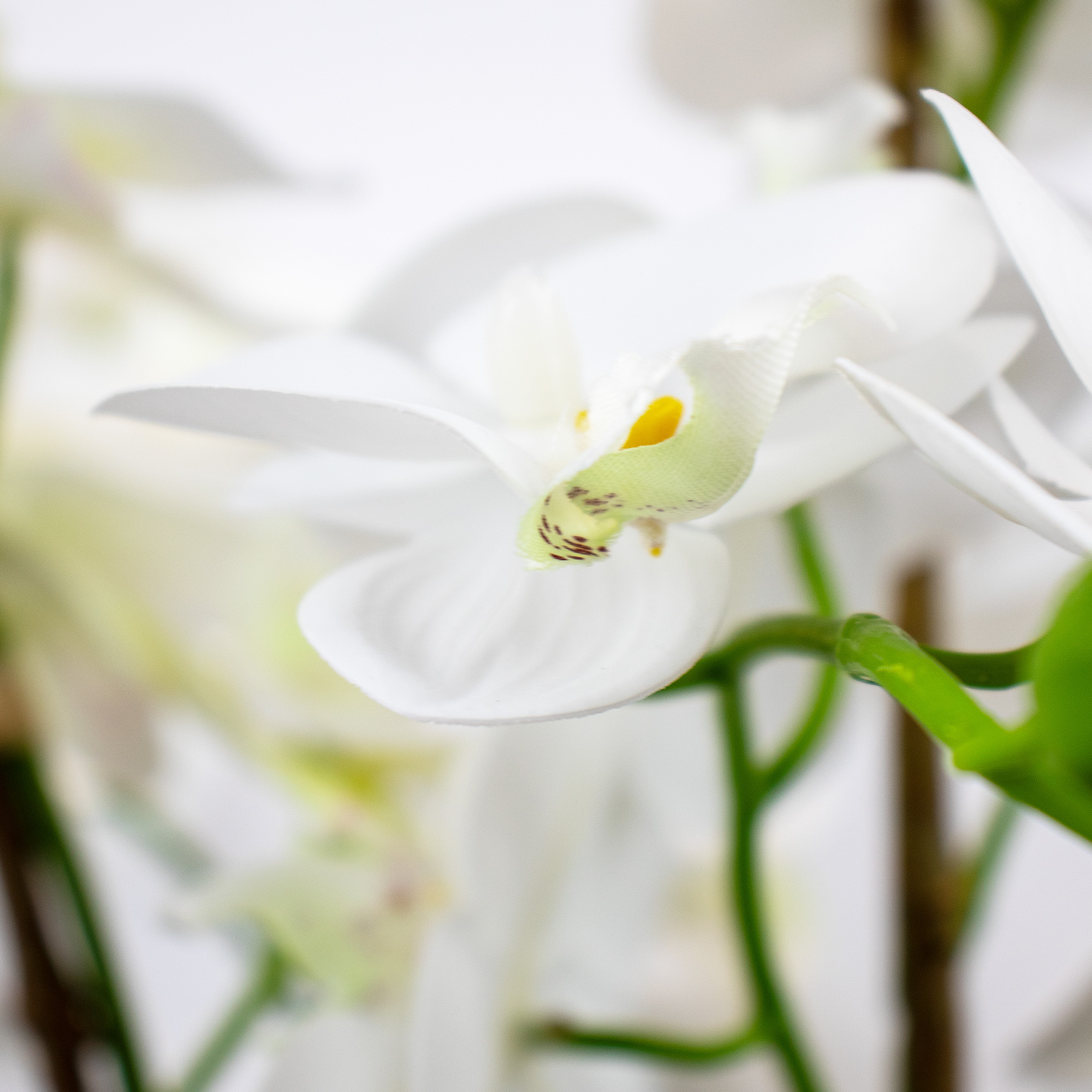 This beautiful, bespoke, and natural-looking artificial orchid arrangement is made to order by our team of passionate and skilled florists. Each arrangement we make, while based on set design, is a unique piece of floral art that is sure to turn the heads of those whose path it may cross.